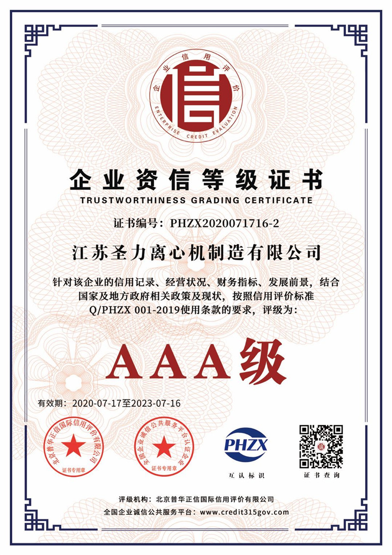 江蘇圣力離心機制造有限公司是國內分離機械行業中主要的離心機生產企業,對離心機的研究、設計、制造有多年的歷史,擁有齊全的設備、完善的檢測手段。公司已通過IS09000國際質量體系認證、ISO14001環(huán)境管理體系認證、ISO45001:2018職業健康安全管理體系認證和CE認證,是江蘇省高新技術企業,曾榮獲國家和地方多項榮譽稱號。